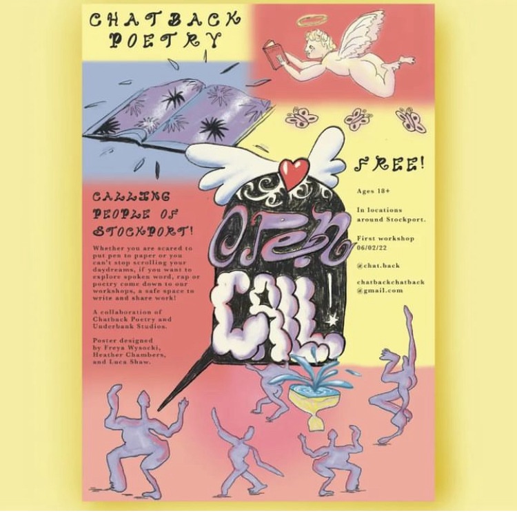 The first ever round of the project, funded by The Arts for Recovery Centre, provided Stockport residents with 10 spoken word workshops, all coordinated and led by myself. We held sessions in all kinds of community spaces, including a community recycling centre, and a secret allotment on top of a multi storey car park. The workshops themselves were friendly and non-judgemental, and allowed a safe space for participants to be vulnerable and express themselves. The project ended with a zine with poems submitted by participants on the project, and a sharing event when we all looked through the zine, and the poems we wrote along the way. To see more about the project, head to @chat.back on instagram.