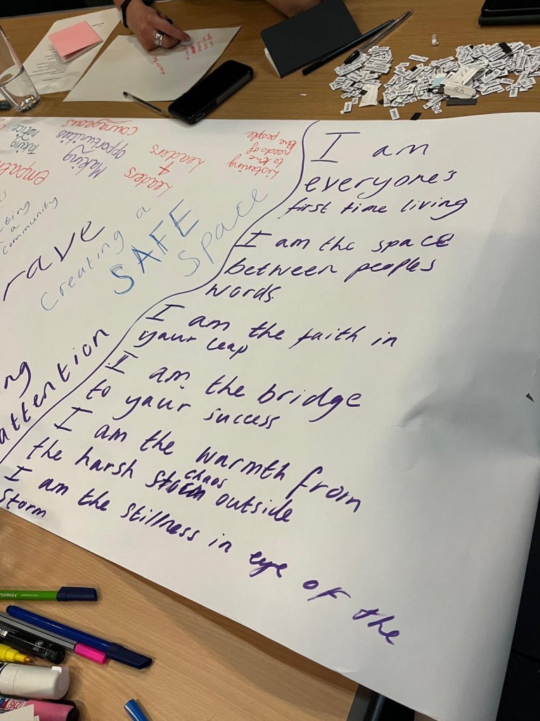 We spoke about what made them feel inspired as a community, and realised that being inspired in a group often is active listening and allowing people the space to voice their thoughts.
